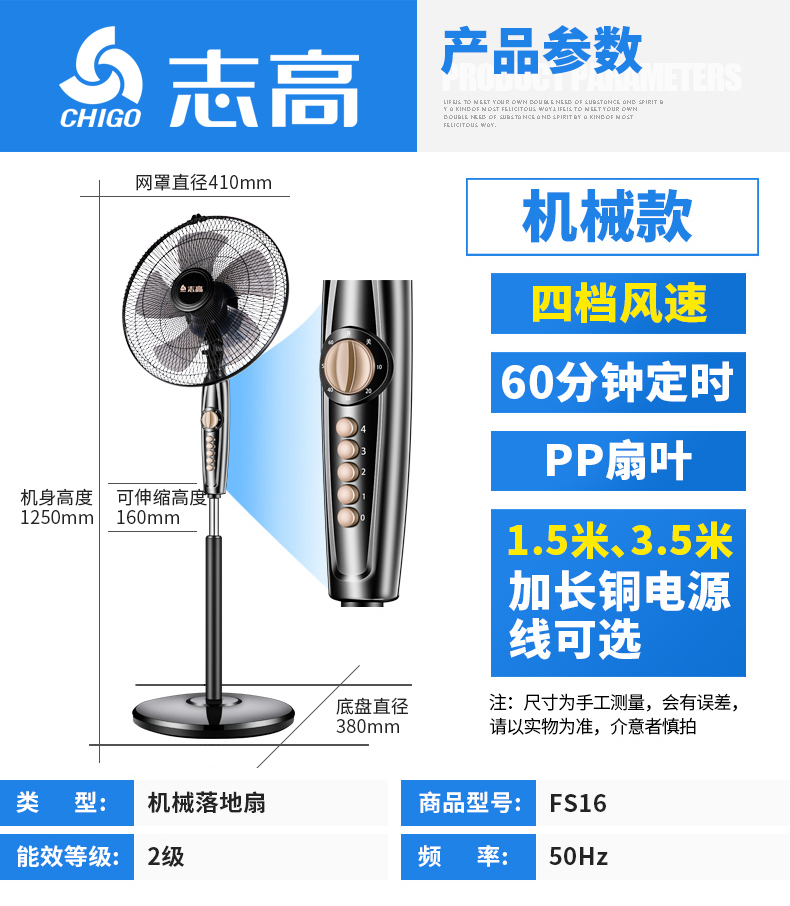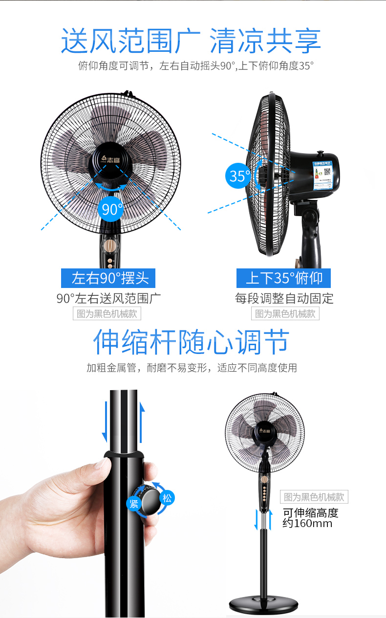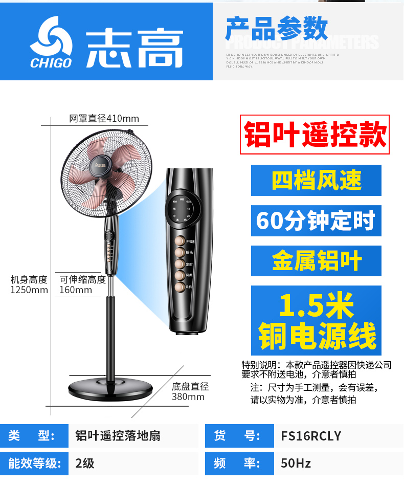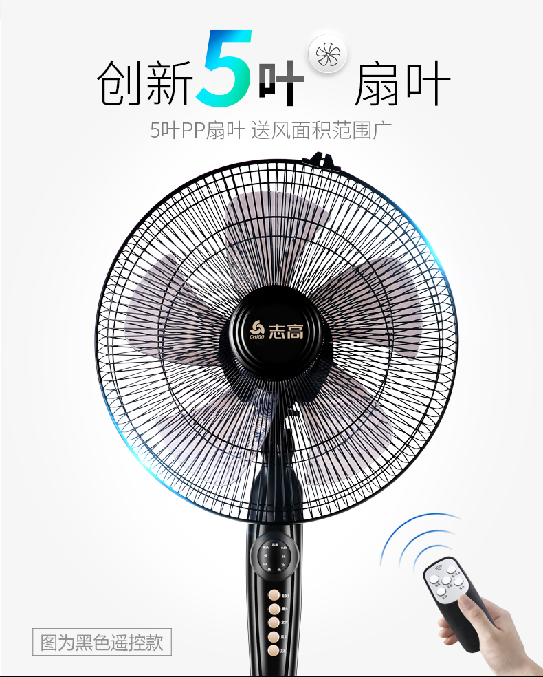 志高家用机械遥控定时静音落地扇