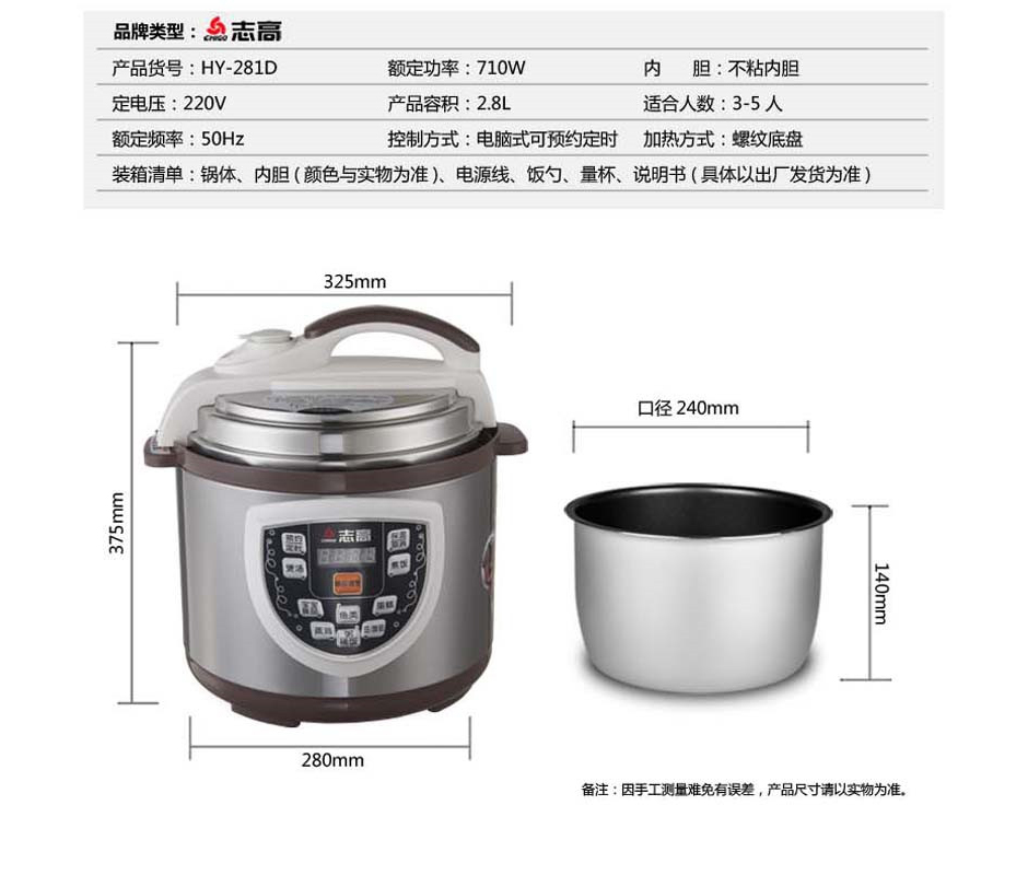 Chigo/志高 HY-50D电压力锅双胆5L 智能高压锅 多功能饭煲