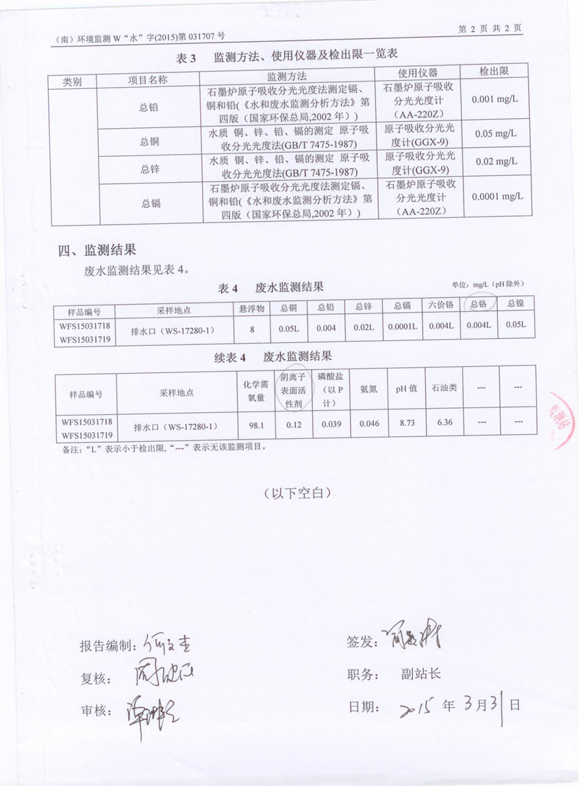 安全環(huán)保資料公布-廢水監(jiān)測報告-第1季度