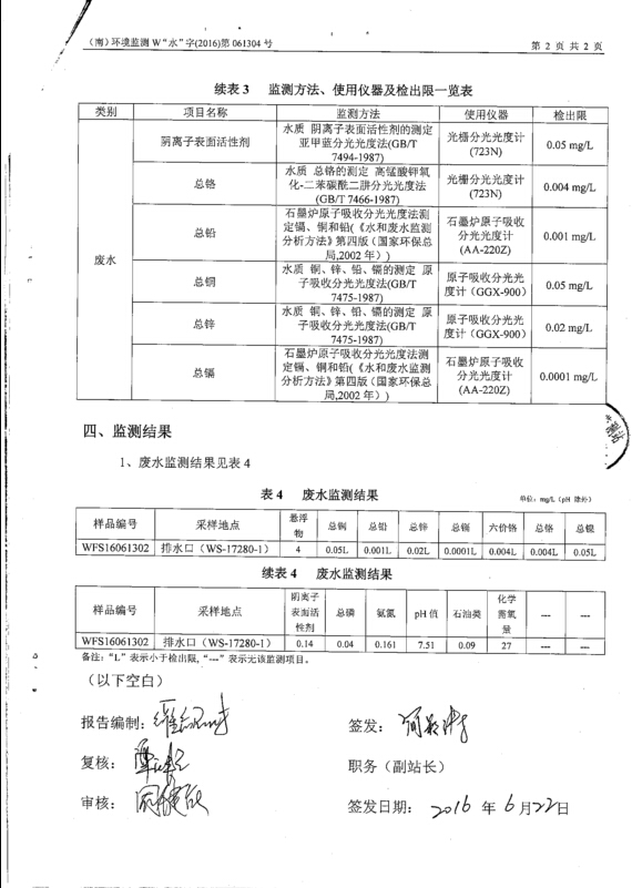 :安全環(huán)保資料公布-廢水監(jiān)測報告-廢水2016